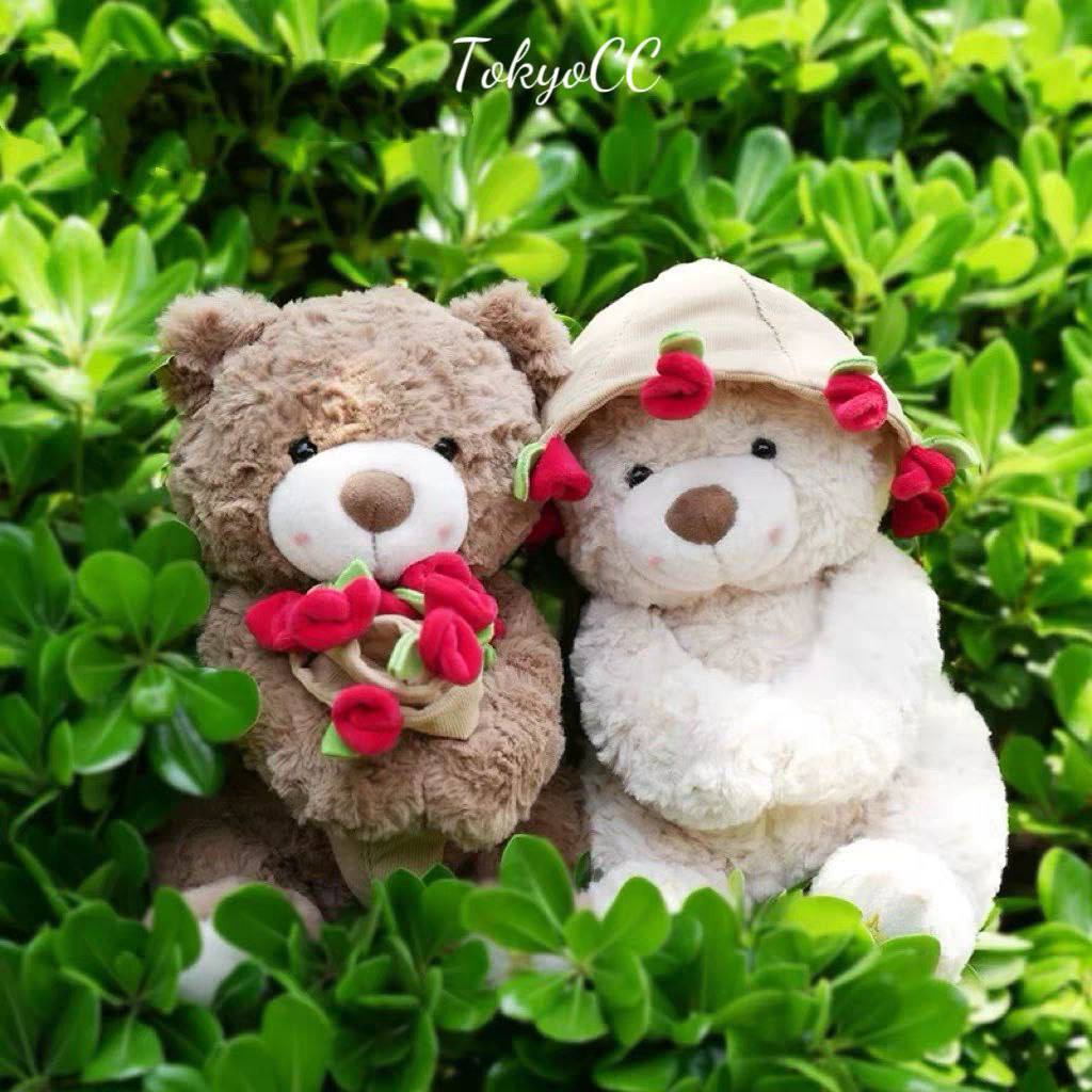▪️يتم فك بوكيه الورد ويصبح طاقيه للدبدوب